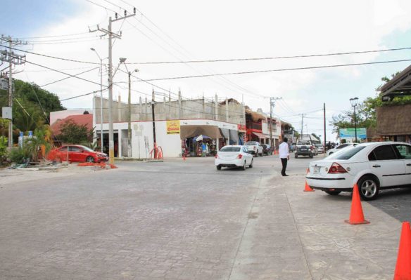 Luego de que concluyeron los trabajos de repavimentación con concreto hidráulico en la parte central del Casco Antiguo de Puerto Morelos.