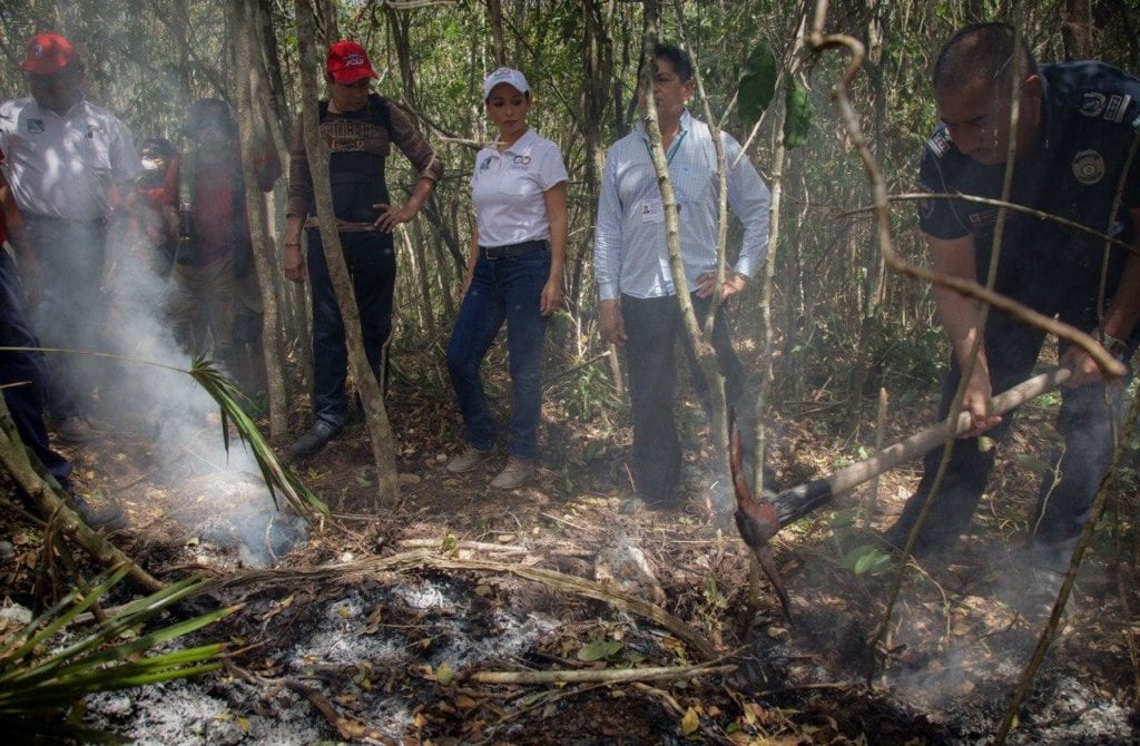 Laura Fernández destacó la participación de los integrantes del comisariado ejidal de Puerto Morelos, para que junto con Bomberos y Protección Civil municipal, se conformara la brigada para estas labores de sofocación.