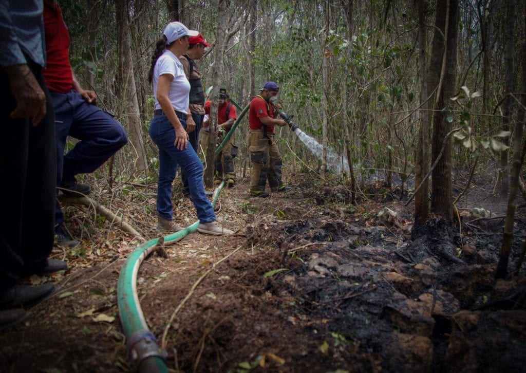Laura Fernández destacó la participación de los integrantes del comisariado ejidal de Puerto Morelos, para que junto con Bomberos y Protección Civil municipal, se conformara la brigada para estas labores de sofocación.