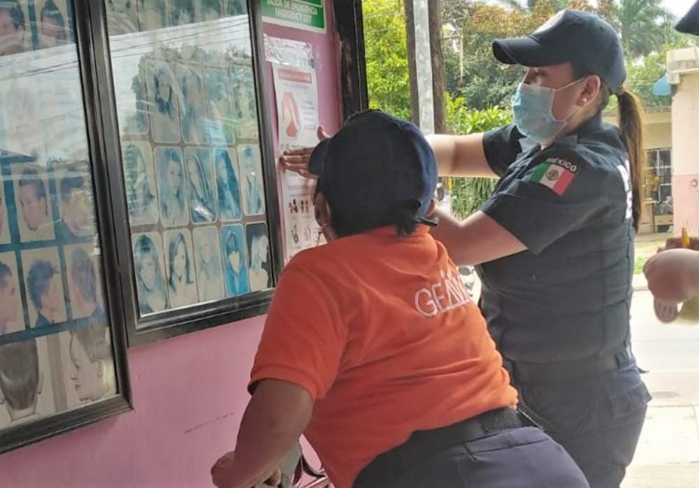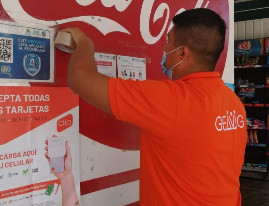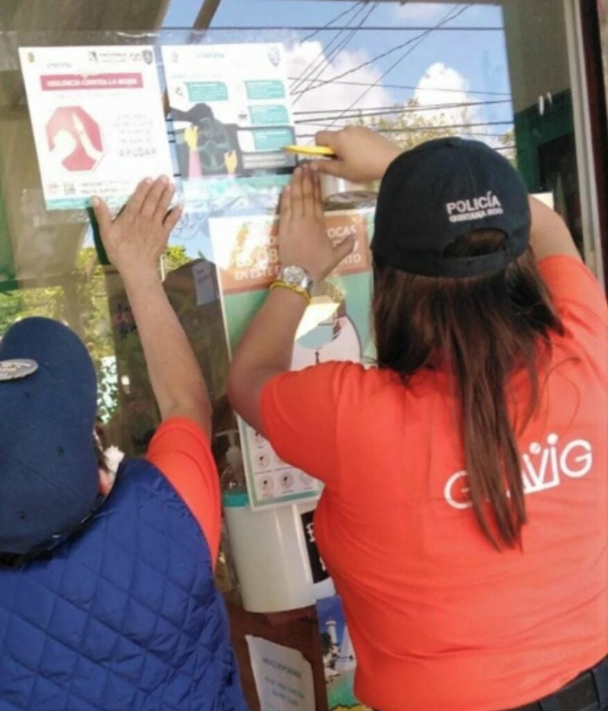 Puerto Morelos, Quintana Roo, 18 de enero de 2022.- La Secretaría municipal de Seguridad Pública y Tránsito de Puerto Morelos puso en marcha, por conducto del Grupo Especializado de Atención a la Violencia Familiar y de Género (GEAVIG), una campaña informativa dirigida a los dueños de negocios y empleados de todo el municipio, para saber actuar en caso de presenciar algún acto violento al interior de sus establecimientos.