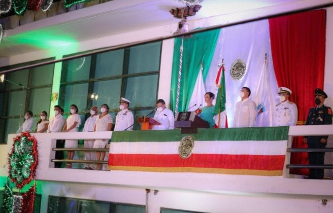 Fue una noche distinta, porque en esta ocasión fue una ceremonia con pocos asistentes, ya que la prioridad del gobierno de la alcaldesa Laura Fernández es proteger la salud de los portomorelenses ante la pandemia de Covid-19, pero fue, a la vez, una noche de mucho sentimiento, en la que el orgullo de ser mexicano quedó a flor de piel, al conmemorarse el 210 aniversario del inicio de la guerra de Independencia.