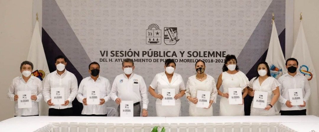 Puerto Morelos.- La primera regidora Ana Luisa Betancourt Canul entregó esta tarde a los integrantes del cabildo, el documento que contiene el tercer informe de Gobierno de la administración 2018-2021 del municipio de Puerto Morelos.