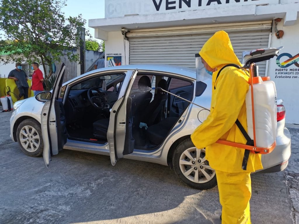 >Como parte de los trabajos emprendidos, sanitizan vehículos particulares, comercios y el Centro de Salud de la comunidad de Leona Vicario, informa la alcaldesa de Puerto Morelos