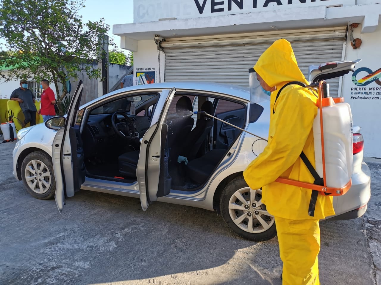 >Como parte de los trabajos emprendidos, sanitizan vehículos particulares, comercios y el Centro de Salud de la comunidad de Leona Vicario, informa la alcaldesa de Puerto Morelos
