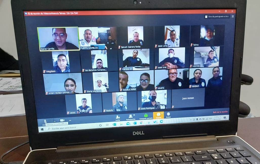 >Los uniformados participan en pláticas en línea sobre derechos humanos, impartidas por la Cdheqroo