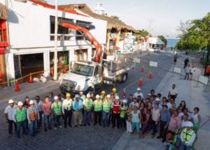 Puerto Morelos.- En un día histórico para Puerto Morelos, y como parte de los trabajos de embellecimiento y modernización del Casco Antiguo, la presidenta municipal Laura Fernández Piña atestiguó esta tarde las maniobras para el retiro de los dos primeros postes de la Comisión Federal de Electricidad (CFE) y Teléfonos de México (Telmex).