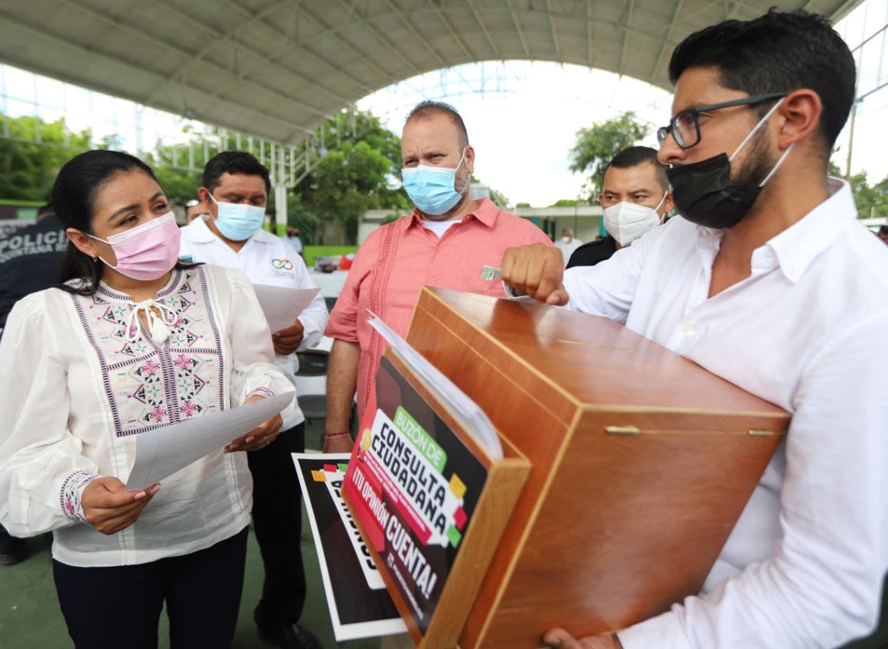Finalmente abundó que adicionalmente a los foros habrá dos esquemas más una encuesta en línea a través de la página oficial puertomorelos.gob.mx, ya que el interés primordial es que nadie quede fuera. “También estamos instalando buzones de participación ciudadana aquí en Leona Vicario y otro en el Casco Antiguo en Puerto Morelos, en los que la gente puede dejar sus inquietudes y propuestas de manera libre”, detalló.