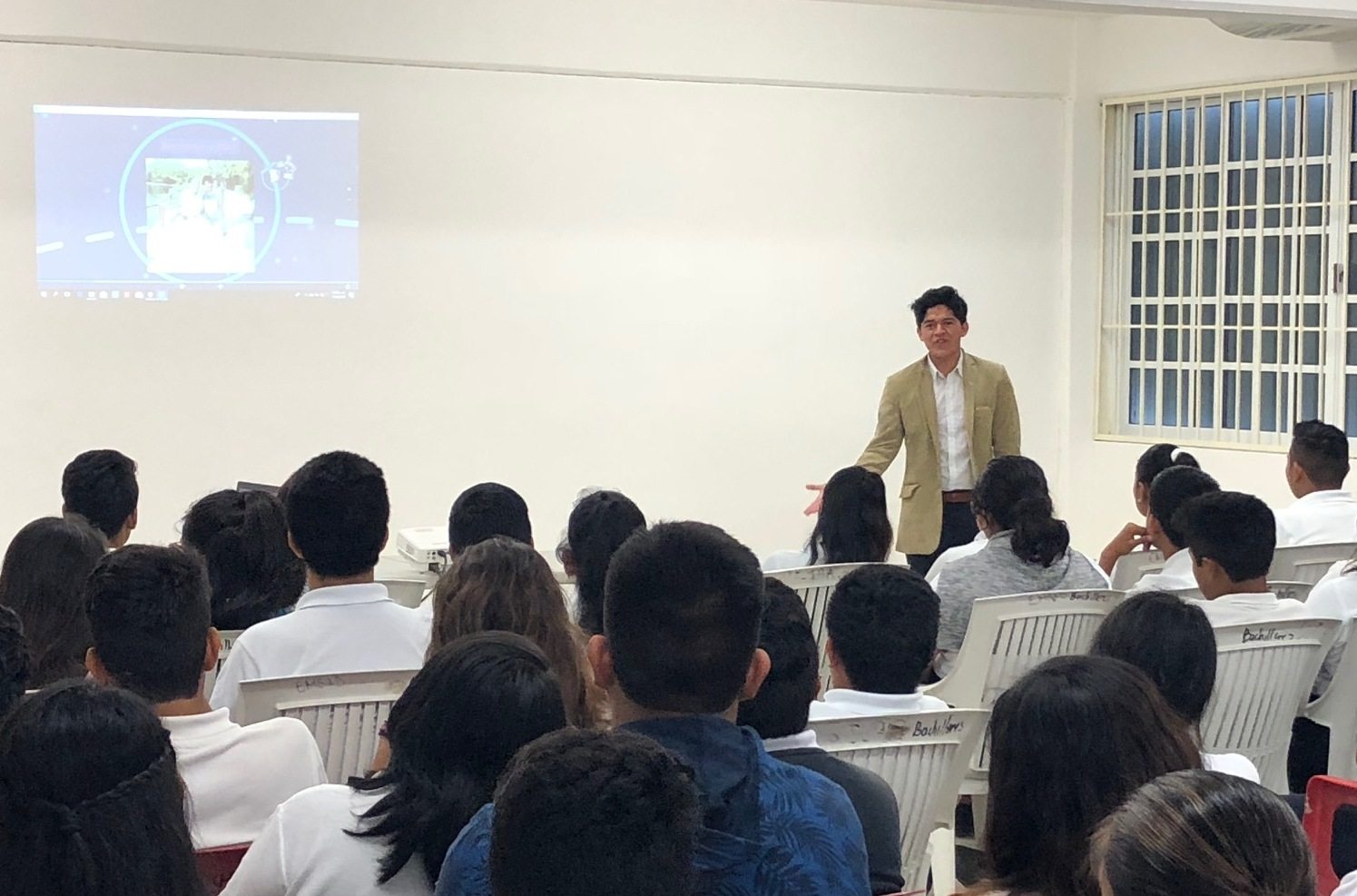 Puerto Morelos.- El joven estudiante de Ingeniería Aeronáutica de la Universidad Politécnica Metropolitana de Hidalgo, Jonathan Cristhan Sánchez Pérez, conocido como el Mexicano Espacial, impartió hoy una conferencia motivacional a alumnos del Colegio de Bachilleres de Puerto Morelos.