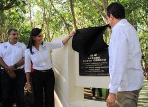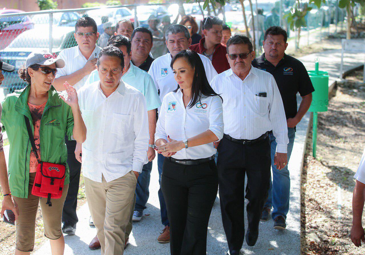 Puerto Morelos.- Con los esfuerzos que se vienen realizando en esta administración municipal y el respaldo del gobernador Carlos Joaquín González, el municipio de Puerto Morelos seguirá un crecimiento firme como destino turístico de éxito y un desarrollo totalmente sostenible, afirmó la alcaldesa Laura Fernández Piña, durante la gira de trabajo en la que inauguraron el Parque Ecológico “Punta Corcho”, colocaron la primera piedra de la Obra de Rehabilitación del Acceso a la Ruta de los Cenotes y visitaron el Dispensario Médico, así como el Centro de Salud.