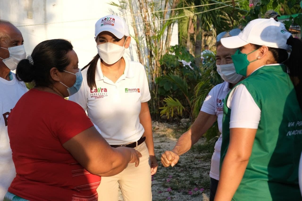 Puerto Morelos.- Laura Fernández Piña, candidata a diputada federal de la coalición “Juntos Hacemos Historia” por el Distrito 4, regresó hoy a esta histórica comunidad de Quintana Roo para reiterar el compromiso de llevar la voz de sus habitantes a la tribuna más alta del país.
