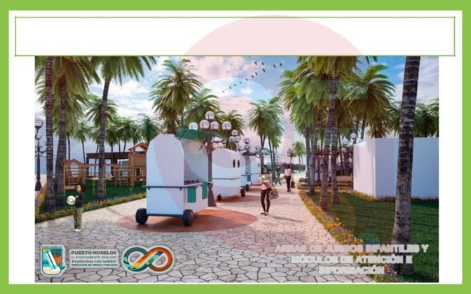 Puerto Morelos.- Gradas con vista al mar y un mejorado y mayor kiosko, son algunas de las múltiples mejoras que tendrá el renovado parque del casco antiguo de esta cabecera municipal, importantes obras que facilitarán la reactivación de actividades artísticas y comerciales en la zona del puerto. Ahora, hoteleros han mostrado algunas imágenes de cómo será.