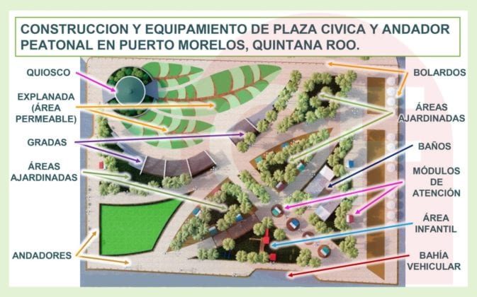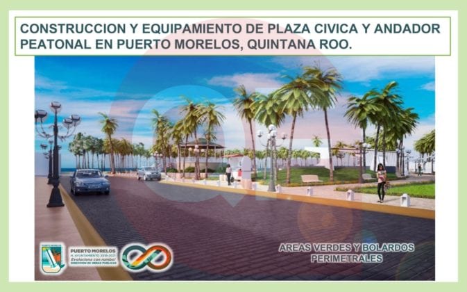 La inversión de la plaza cívica y andador peatonal en el Casco Antiguo de Puerto Morelos es de 19 millones de pesos, en donde la primera etapa se realizarán trabajos para colocar cableado subterráneo; en la segunda fase, se trabajará en mejorar la imagen urbana y crear los lugares de esparcimiento para los ciudadanos.