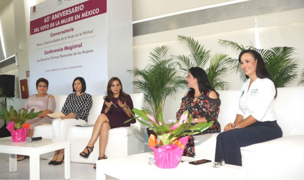 En este conversatorio, que fue el preámbulo del acto protocolario encabezado por el gobernador Carlos Joaquín González, acompañado por su esposa, Sra. Gabriela Rejón de Joaquín, y la titular del IQM, Silvia Damián López, en el marco del 65 aniversario del voto femenino en México, la alcaldesa de Puerto Morelos felicitó a todas las mujeres de Quintana Roo, sobre todo a las que tienen una participación política, porque desde su trinchera construyen más y mejores espacios.