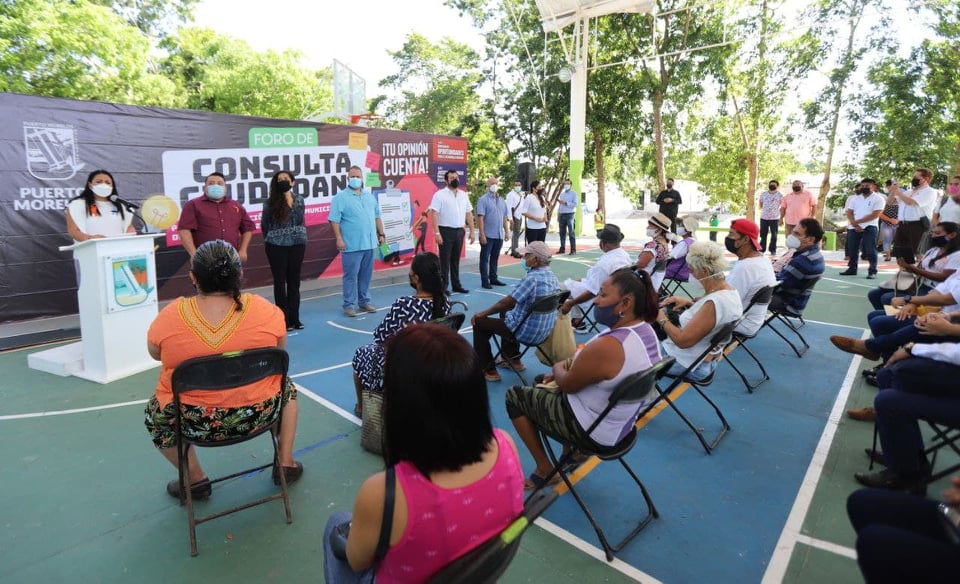Puerto Morelos, Quintana Roo, 5 de noviembre de 2021.- La presidenta municipal de Puerto Morelos, Blanca Merari Tziu Muñoz, abrió el Foro de Participación Ciudadana para la elaboración del Plan Municipal de Desarrollo (PMD) 2021- 2024, en el domo de la colonia Zetina Gasca, en donde destacó su interés de escuchar y atender las inquietudes de los portomorelenses, a quienes agradeció responder a la convocatoria.