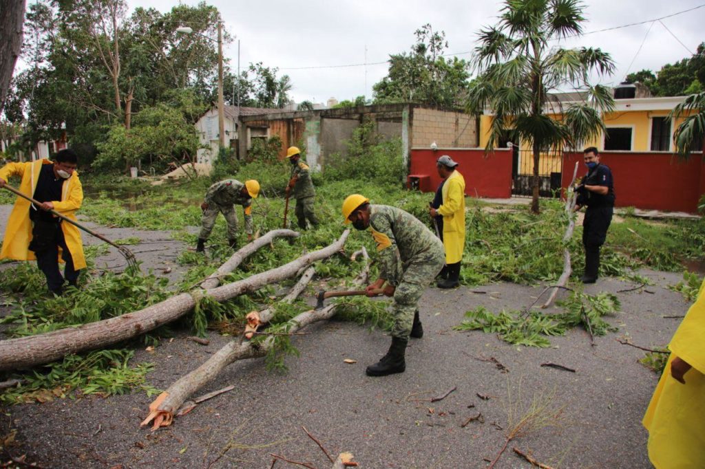 “Contamos con el apoyo de la Secretaría de la Defensa Nacional (Sedena), que instaló el Plan DN-III ante la emergencia climática, para liberar en primera instancia vialidades primarias como las avenidas Joaquín Zetina Gasca y Timón, y luego las secundarias como es la Joaquín Hendricks Díaz y Chacá, a fin de recuperar la movilidad”, mencionó.