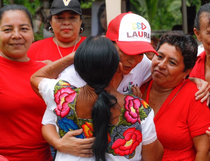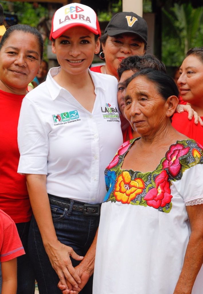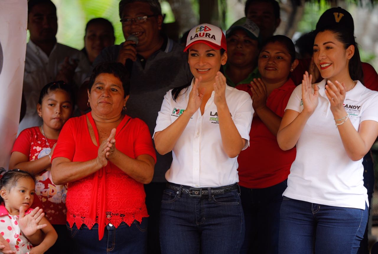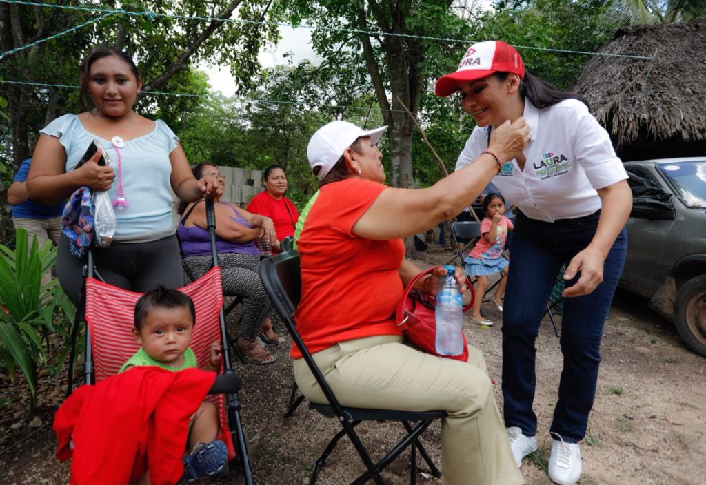 La candidata de los partidos Revolucionario Institucional, Verde y Nueva Alianza, que conforman la coalición Por Quintana Roo, visitó este domingo el poblado de Leona Vicario, en compañía de Candy Ayuso Achach, quien busca la diputación federal por el distrito 04.