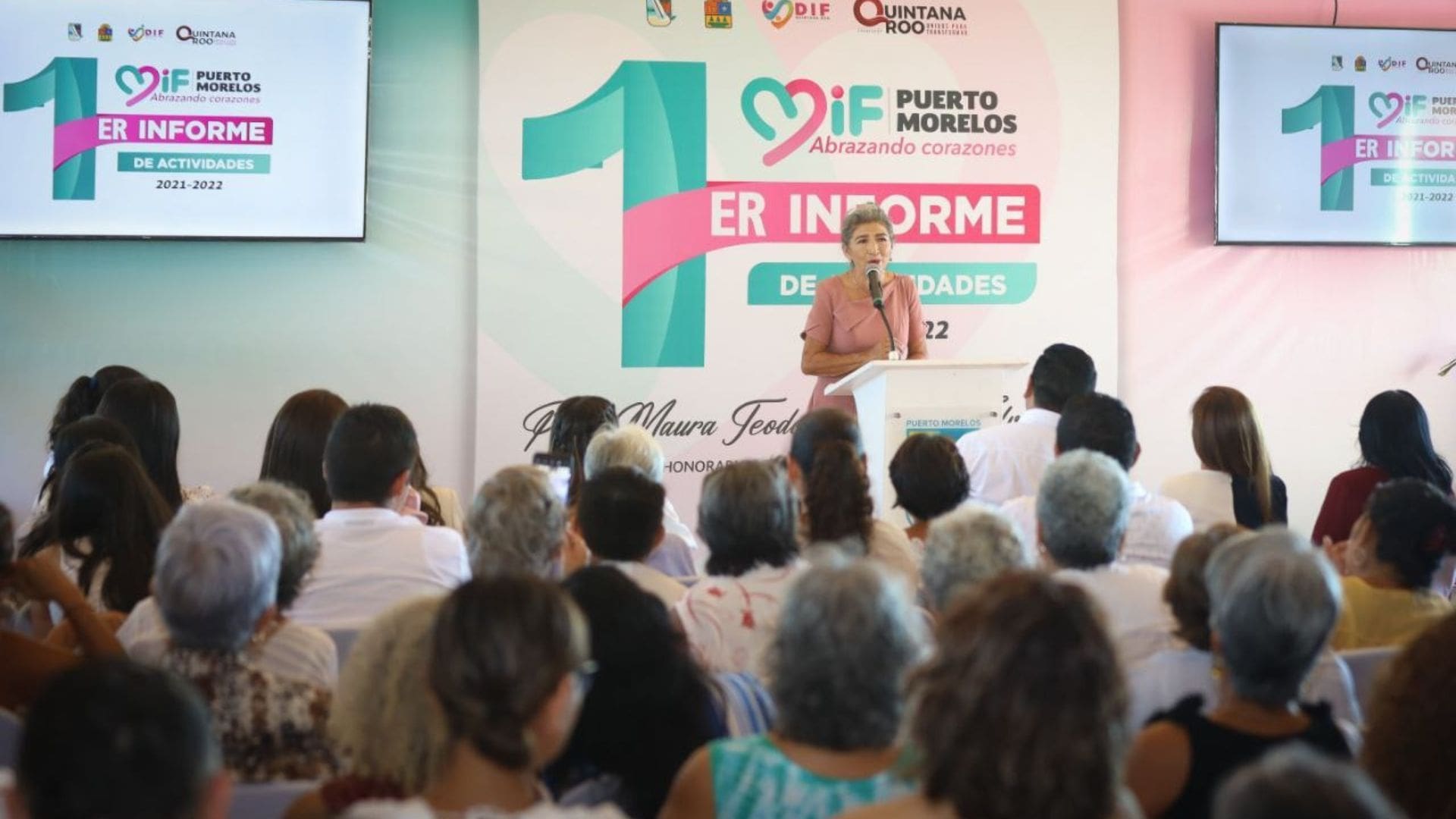 Durante el evento, Maura Cordero entregó el informe impreso a la presidenta municipal Blanca Merari Tziu, y a Verónica Lezama, presidenta del DIF Quintana Roo. Cabe destacar que a este acto asistieron las presidentas honorarias del DIF de diversos municipios del Estado, directoras generales de la misma institución, y las ex presidentas del DIF Puerto Morelos, funcionarios municipales y adultos mayores, entre otros invitados especiales.