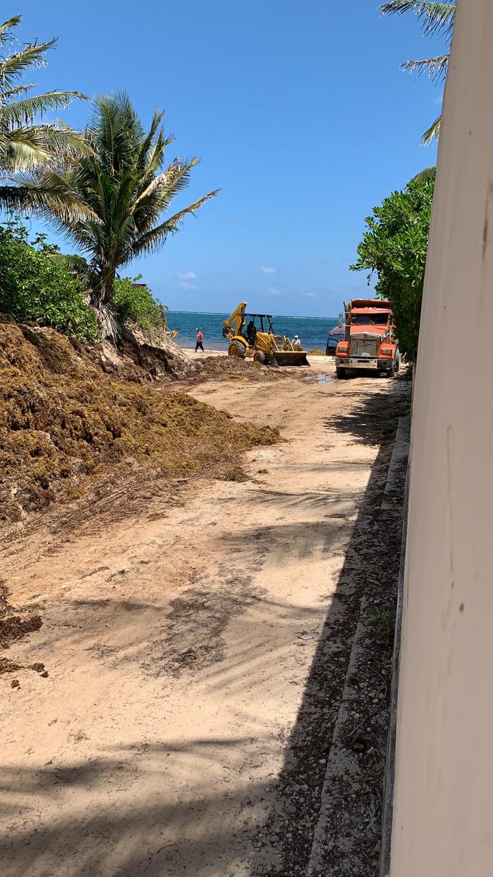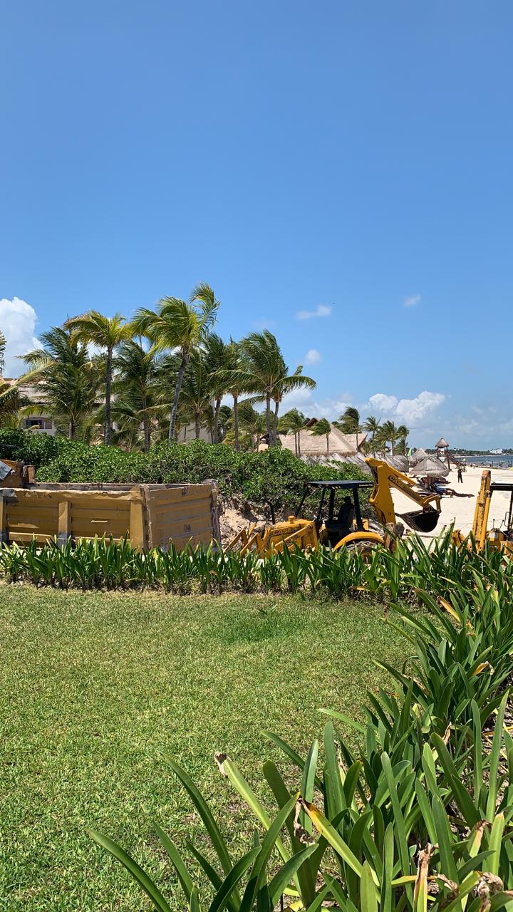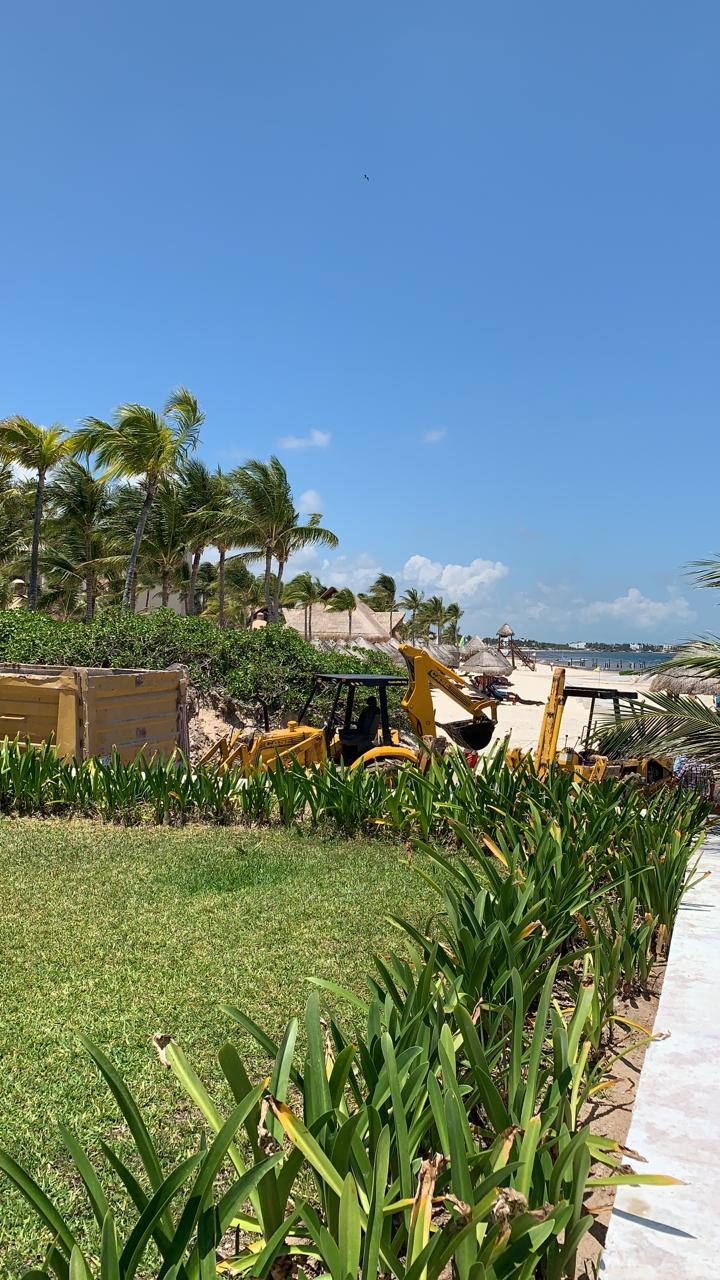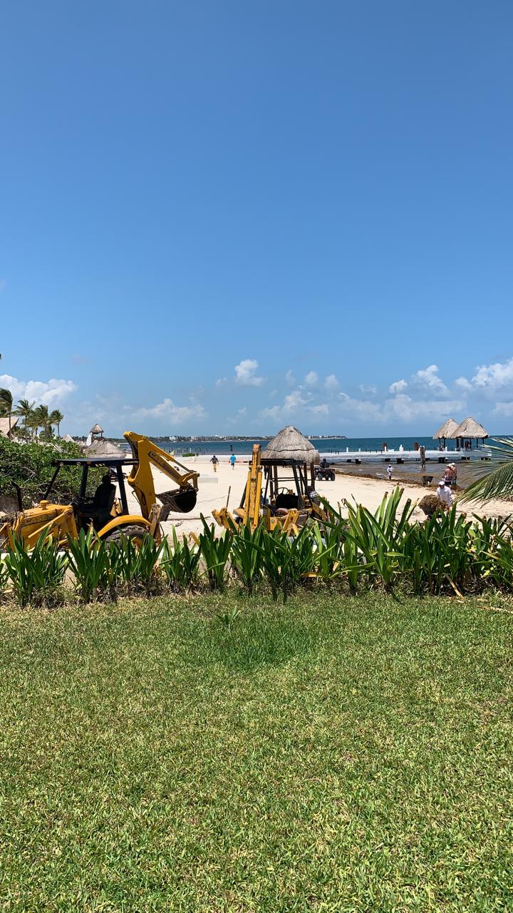 Así sucedió ayer en el hotel Excellence, donde dos retroexcavadoras y un camión volquetero eran usados para juntar montículos de sargazo, que eran colocados en el pasillo usado como acceso a esta playa.