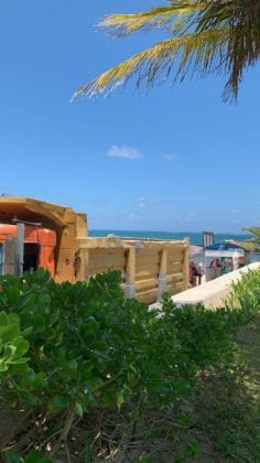 La presencia del camión, las maniobras de la maquinaria y el “cerro” de sargazo, hacían imposible el paso a la playa, salvo para los huéspedes del hotel, claro está.