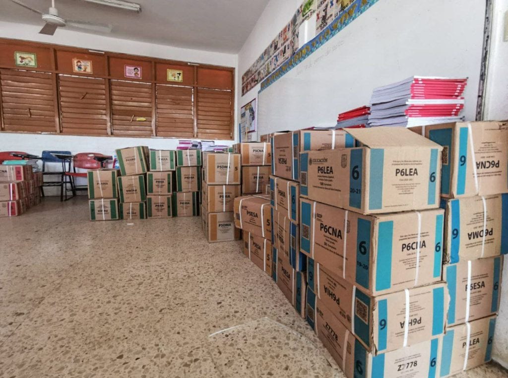 Puerto Morelos, Quintana Roo, 26 de septiembre de 2020.- La administración de la alcaldesa, Laura Fernández Piña, a través de la Dirección de Educación Municipal, se encargó del traslado de más de 15 mil libros de texto y materiales correspondientes a este Ciclo Escolar 2020-2021, para que dichas herramientas didácticas lleguen oportunamente a los alumnos.