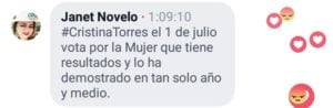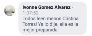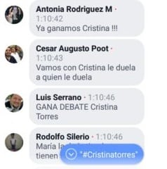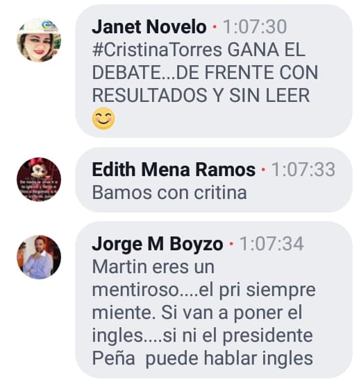 Durante todo el debate hubo comentarios positivos para Cristina Torres que finalmente la posicionaron como la ganadora. Esto luego del emotivo discurso donde enlistó todas las acciones que ha realizado durante su gobierno.