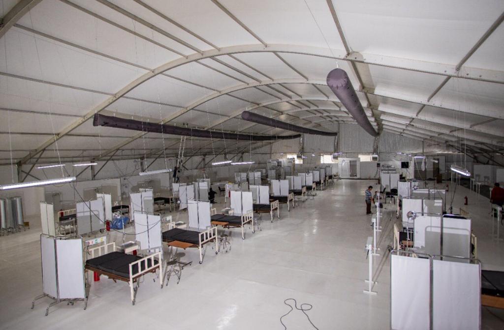 En ocho días se construyó, por ejemplo, el primer Hospital Móvil Covid-19 con 50 camas bajo una estructura encapsulada con aire acondicionado en el estacionamiento del Hospital General Jesús Kumate de Cancún, a las que se sumarán 200 más en los hospitales 2 y 3, para dar un total de 250 camas.