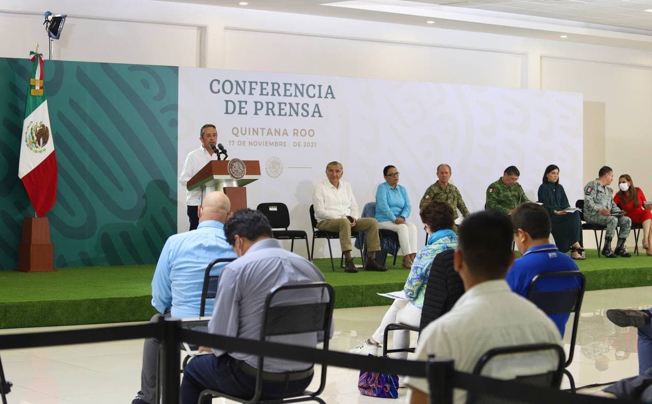 Dijo que, en coordinación con el gobierno federal, se trabaja en los tramos cuatro, cinco, seis y siete para los derechos de vía del Tren Maya. Con ello, se logrará que la zona maya esté unida y conectada a los diversos sitios para su beneficio. También se trabaja en la construcción del aeropuerto de Tulum y la remodelación del aeropuerto de Chetumal.