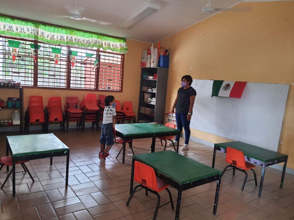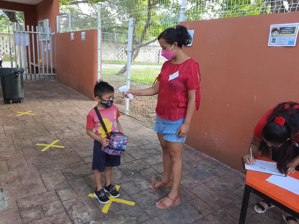 Actualmente, solo se permite el 30% de estudiantes en un aula, lo que permite una distancia de 1.5 entre cada uno de ellos, con una jornada máxima de cuatro horas en la escuela. Además, se verifica el filtro en casa, el filtro al ingreso de la escuela, el filtro en el salón de clases y el monitoreo permanente.