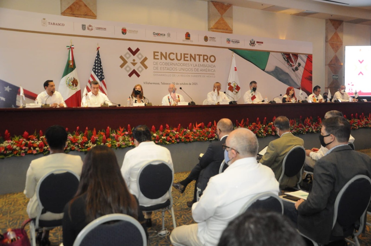 Villahermosa.- Quintana Roo participó en el Encuentro de Gobernadores y la Embajada de Estados Unidos de América que se celebró hoy en esta ciudad para abordar temas como migración, desarrollo económico y medio ambiente, con el objetivo de definir estrategias, acciones y proyectos que impulsen el desarrollo de la región sureste de México.