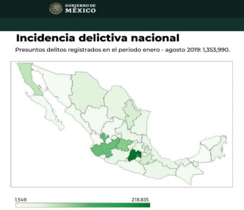 Según datos dados del Secretariado Ejecutivo del Sistema Nacional de Seguridad Pública, en México se han abierto 19 mil 648 investigaciones por homicidios dolosos; de estas, casi una de cada 10, un 9.11%, han sido cometidas en Guanajuato, estado con el mayor número de casos, con mil 790 (o cuatro veces la cifra de Quintana Roo).