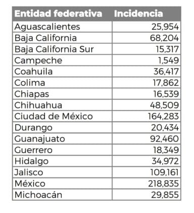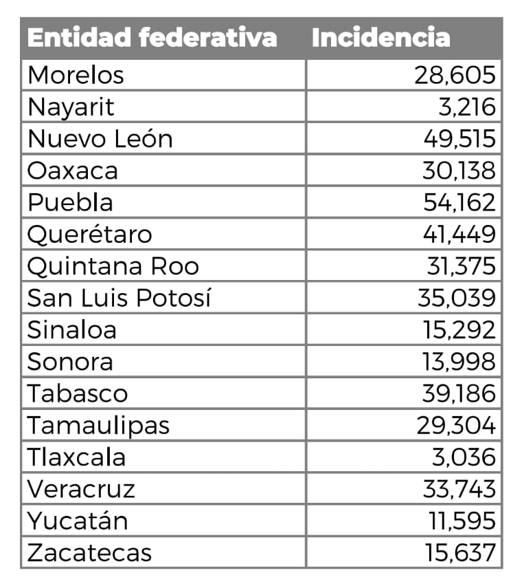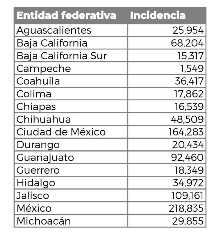De acuerdo a la información del Secretariado Ejecutivo del Sistema Nacional de Seguridad Pública, Quintana Roo se ubica número 15 en este ranking, con 31 mil 375 casos; en contraste, el Estado de México acapara 218 mil casos, o más de seis veces los incidentes de la entidad.
