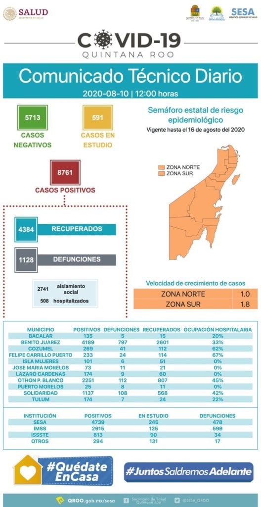 En las últimas 24 horas, 13 personas han fallecido a causa del Covid-19 oficialmente en Quintana Roo, además de sumarse otros 68 casos confirmados de esta enfermedad.