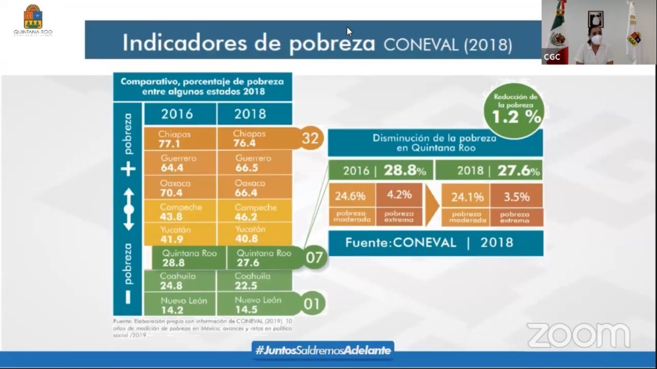 “Quintana Roo se encontraba en 2018 en el séptimo lugar, teniendo un porcentaje del 7.6% de pobreza. Hemos tenido una caída en la entrada económica”.