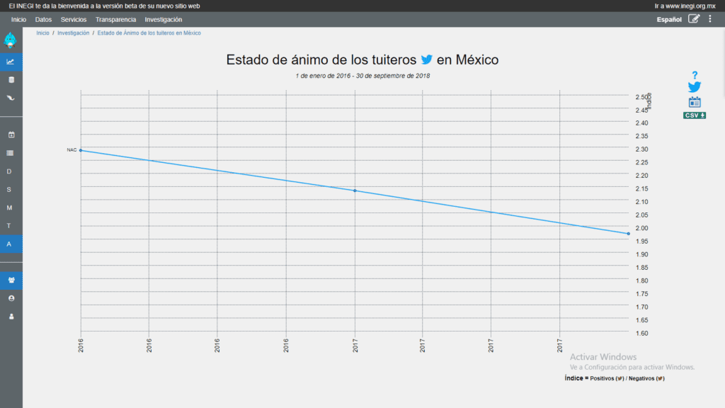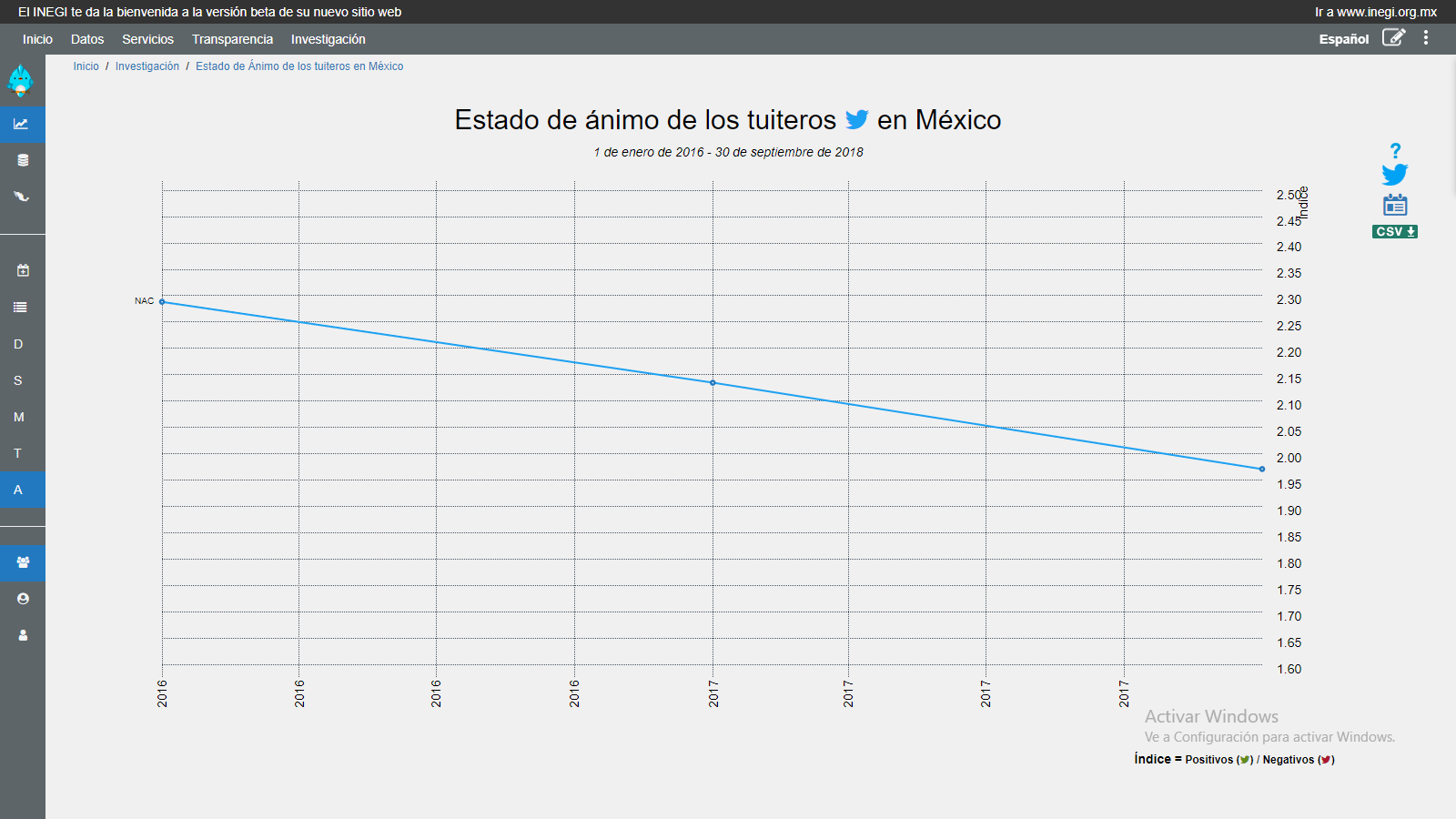 Entidades del centro del país como Ciudad de México, reportan 71%, o Morelos 72%, pero en general de 2016 a 2018, México ha decrecido el ánimo en esta red social, pues la media en septiembre de 2018 fue de 65% mientras que en el mismo periodo de 2017 fue de 65%, y de 2016 fue de 68%.