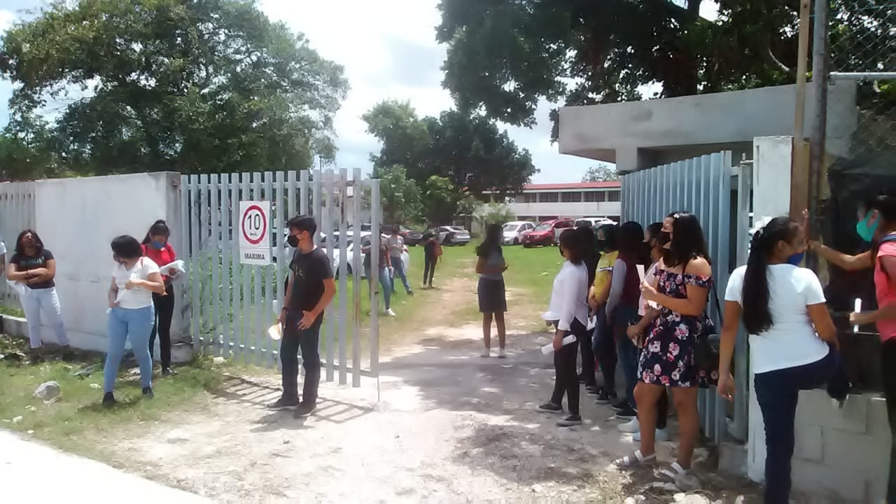 En el Conalep 2de la Región 228, se clausuró el acceso principal, para controlar el ingreso de los adolescentes a través del estacionamiento, lugar en donde muchos padres de familia quedaron en espera.