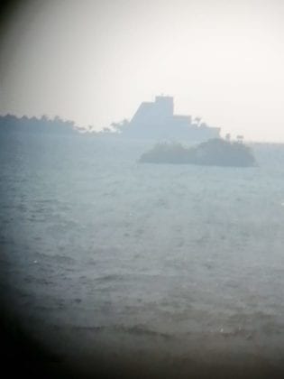 Finalmente este islote recaló en Isla Blanca, consitente en un piso de madera triplay, con varios árboles, todo sostenido por botellas de plástico.