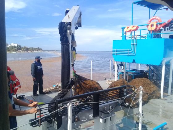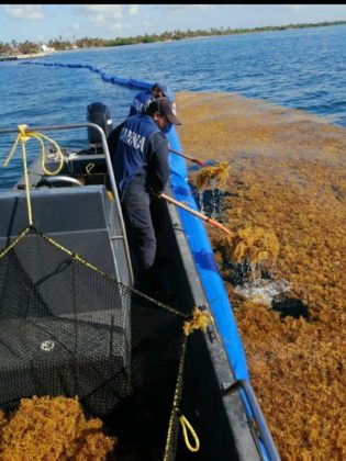 En el caso de la Marina continúa con el despliegue operativo de una aeronave, 26 embarcaciones de las cuales ocho son sargaceras y cuatro barredoras, así como de 60 elementos navales, quienes, con 4 mil 252 metros de barrera, apoyan en la recolección del sargazo en las diferentes playas afectadas de los municipios de Solidaridad (Playa del Carmen), Benito Juárez (Cancún), Puerto Morelos, Tulum, Cozumel, Isla Mujeres y Othón P. Blanco (Chetumal).