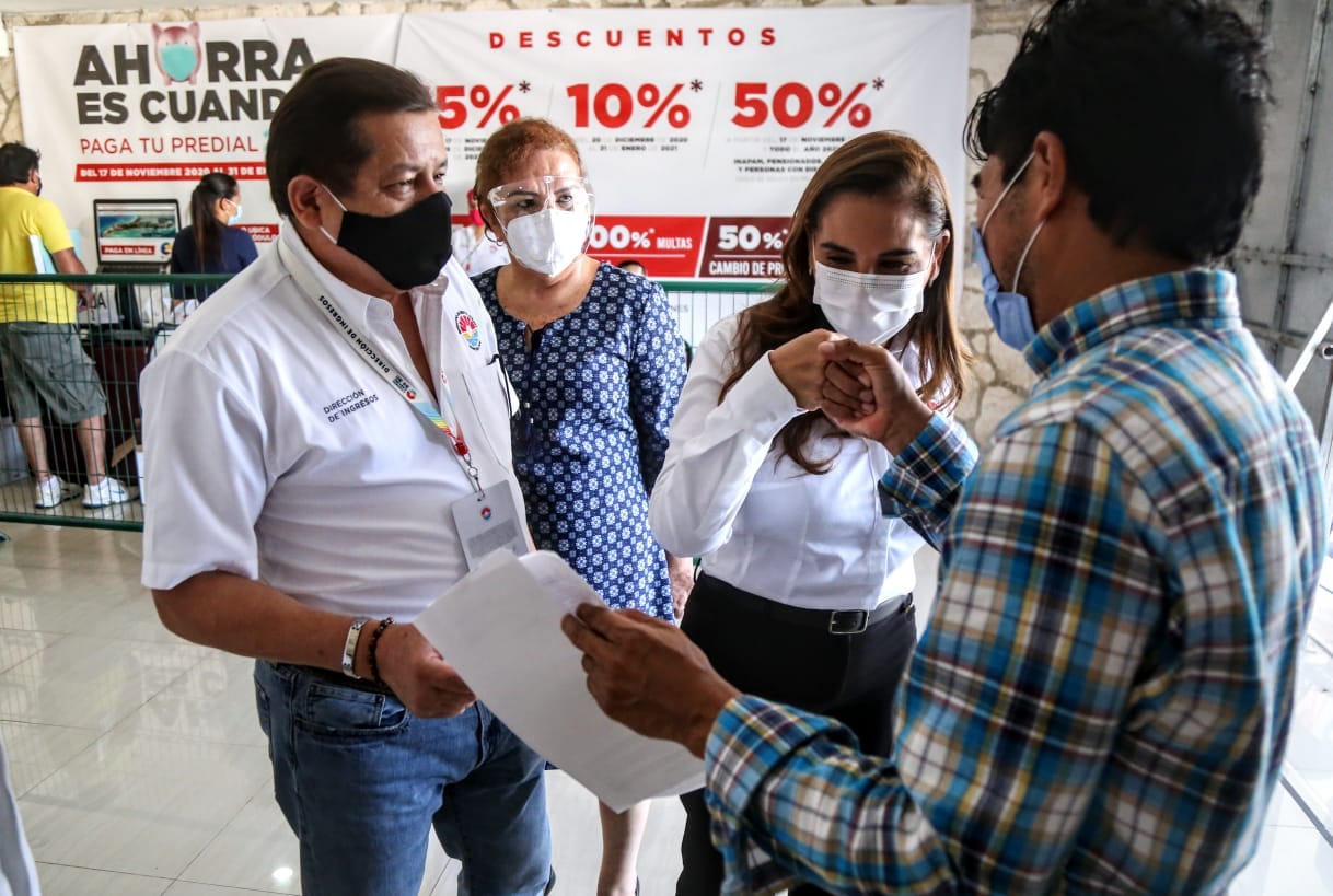 La Presidente Municipal Mara Lezama realizó un recorrido por varias oficinas del Palacio Municipal para supervisar el cumplimiento de las recomendaciones sanitarias y al saludar a los ciudadanos recordó que están disponibles varios trámites en línea para comodidad desde su hogar o negocio, ya que se puede consultar estados de cuenta y descuentos vigentes así como hacer pagos con candados de seguridad para transacciones en línea para agilizar los procedimientos y evitar posibles contagios.