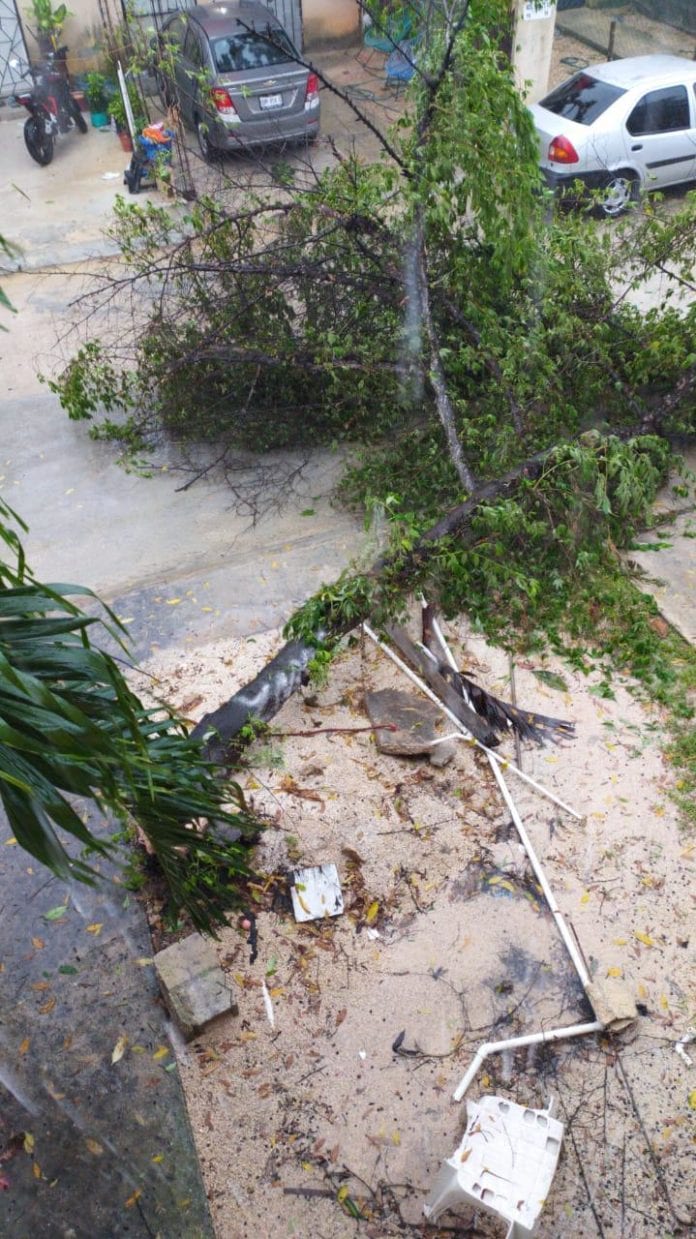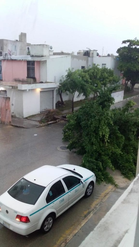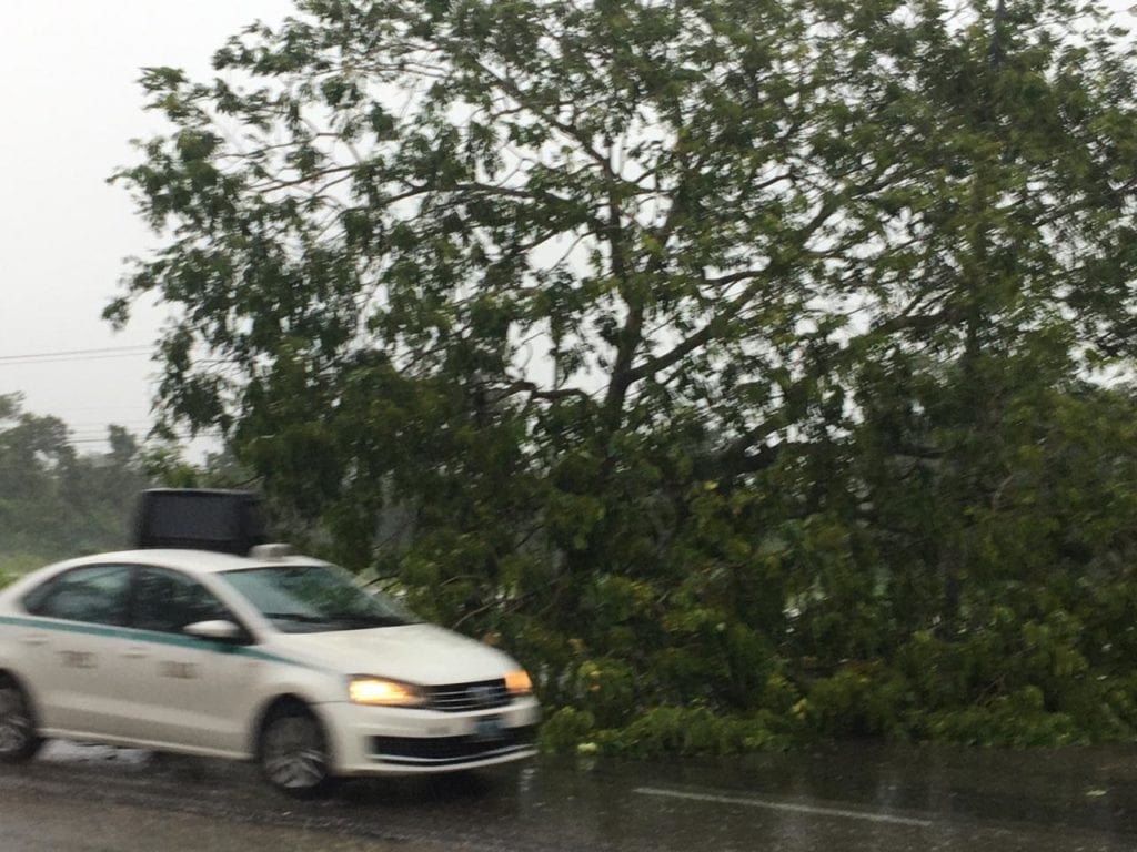 Uno de los primeros reportes data de un árbol que cayó sobre la carretera federal Reforma Agraria-Puerto Juárez a la altura del kilómetro 339.2, del tramo Puerto Morelos Cancún.
