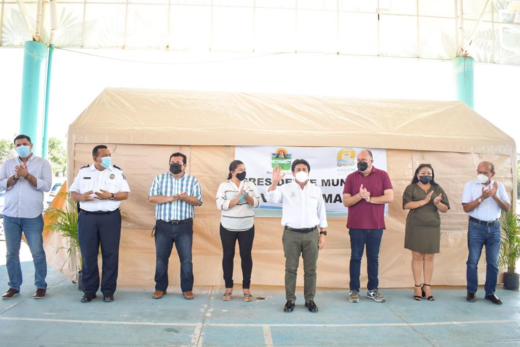 Tulum, Quintana Roo.- Con una campaña de concientización sobre la urgencia de mantener las medidas de higiene y así prevenir rebrotes de Covid-19, dio inicio la Caravana de Servicios que emprende el presidente municipal de Tulum, Víctor Mas Tah, quien este martes visitó la delegación de Akumal junto con las diversas direcciones que acercan la atención a la población con la finalidad de que no se trasladen a Tulum en caso de requerir un servicio o hacer un trámite.
