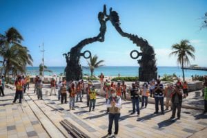 Al supervisar personalmente el avance de la obra, que se complementa con la rehabilitación de la emblemática Quinta Avenida y calles aledañas, agradeció a los trabajadores de la construcción a cargo: “Ustedes son gente que ayuda con la construcción y transformación de Solidaridad ¡Qué viva la vida y la esperanza!”.