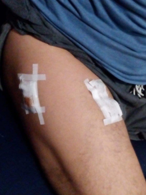 “Me entró por la parte trasera del muslo derecho, pero en mi caso no salió la bala, la bala se quedó alojada en la pierna, me mostraron una bala y hasta un doctor dijo de broma ‘ahí están sus balas de goma’, la pusieron en una bolsa y se la llevaron, sí vi que fue una bala de una pistola calibre 9 mm, tal vez”, señala.