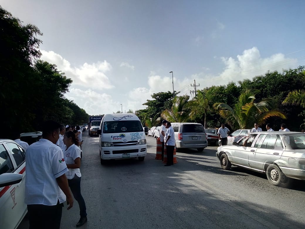 Tulum.- Tulum.- Taxistas integrantes del sindicato Tiburones del Caribe bloquearon esta mañana de forma intermitente la vía costera hacia la Zona Hotelera y el Parque Nacional Tulum, en protesta contra las medidas de la Comisión Nacional de Áreas Naturales Protegidas (Conanp) y en repudio al director del parque, Fernando Orozco.