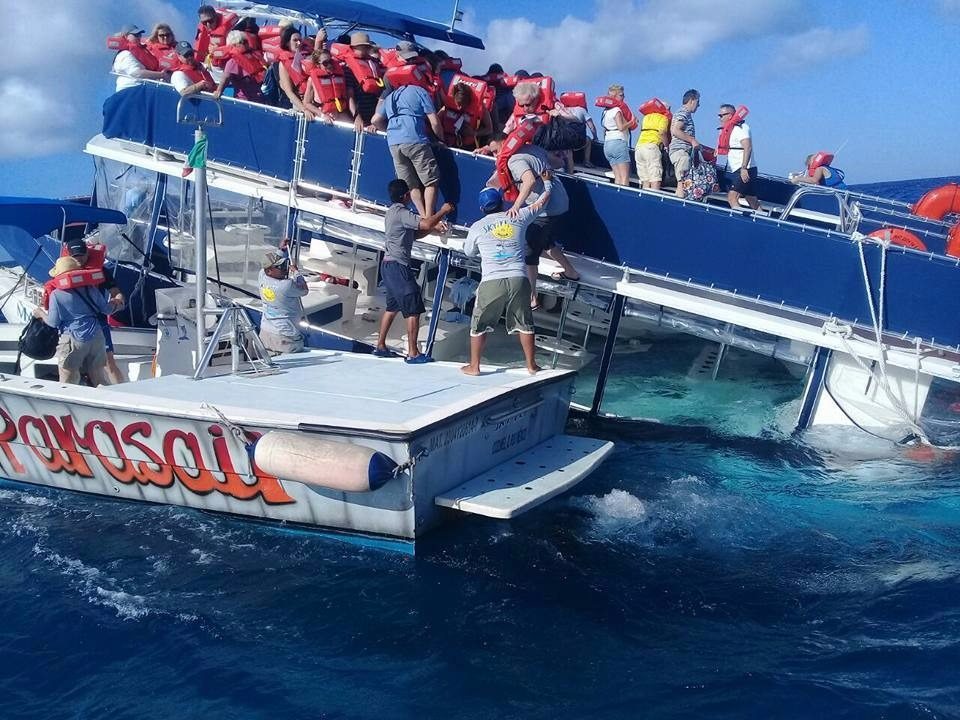 Lancheros particulares, de servicios turísticos de buceo, hoteles, deportes extremo y de pesca, acudieron al lugar y, después de 20 minutos de maniobras, evacuaron a todos, tanto tripulantes como pasajeros. En tanto, el catamarán parcialmente sumergido fue remolcado por otra embarcación a una marina seca.