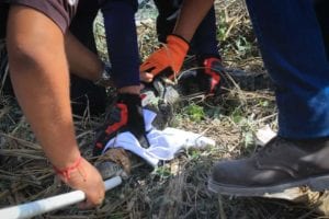 El reptil fue divisado junto a la cerca perimetral de una empresa de materiales, de nombre Sumacasa, por lo que el personal llamó al número de emergencias, acudiendo al lugar personal de la Dirección de Medio Ambiente del Ayuntamiento de Solidaridad, y varios bomberos, que auxiliaron en la tarea de inmobilizar y llevarse al saurio.