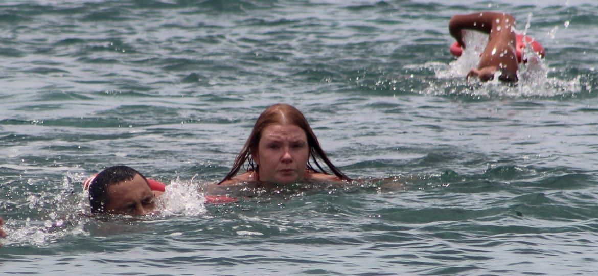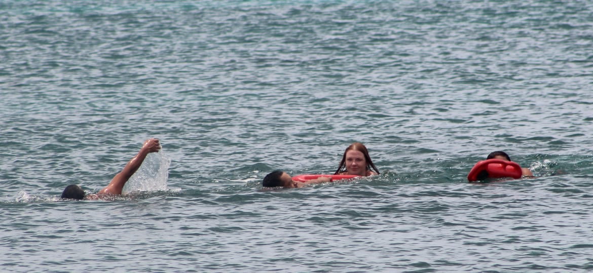 Cozumel, Quintana Roo.- Una familia de origen a extranjero ingresó a la playa Las Casitas, de Akumal, a pesar de la actual restricción por la emergencia sanitaria, huyendo una mujer de las autoridades ingresando al mar, del que tuvo que ser sacada cuando comenzó a ahogarse.
