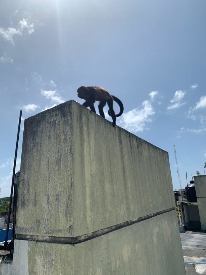 Playa del Carmen.- Un mono saraguato que se paseaba entre los tejados del fraccionamiento Las Palmas 2, fue rescatado esta tarde por personal del Ayuntamiento.