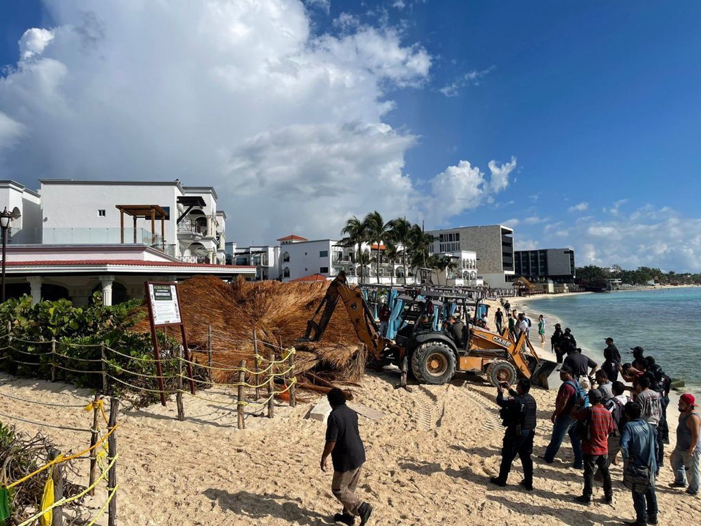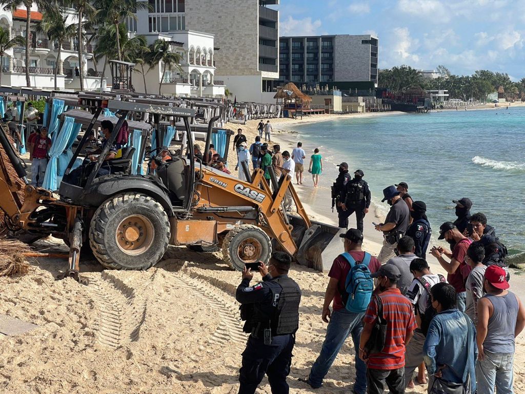 Playa del Carmen, Quintana Roo.-Como parte del operativo “Playa Segura”, para recuperar espacios públicos, autoridades retiraron camastros, palapas y mobiliario que obstruía la franja costera, para garantizar el derecho cuidadano al dusfrute de estas zonas.