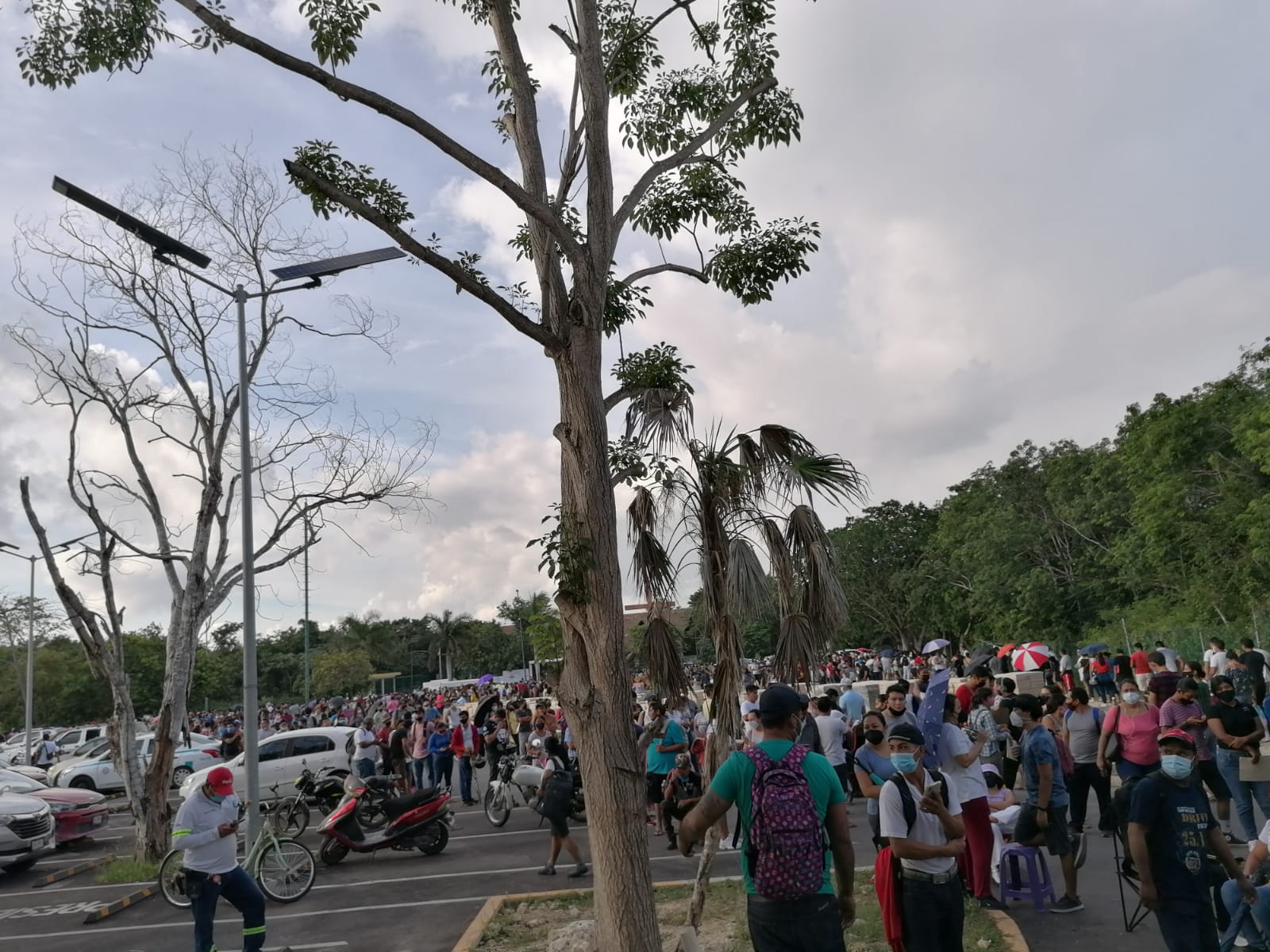 “Mi esposo y yo llegamos con otros compañeros de trabajo y nos formamos, ya había una fila de unas 700 personas, pues muchos se vinieron a quedar desde un día antes. Empezaron desde las 8:30 a ingresar pero nunca dijeron en la convocatoria que solo iban a recibir a la gente que tuviera INE de Quintana Roo”.