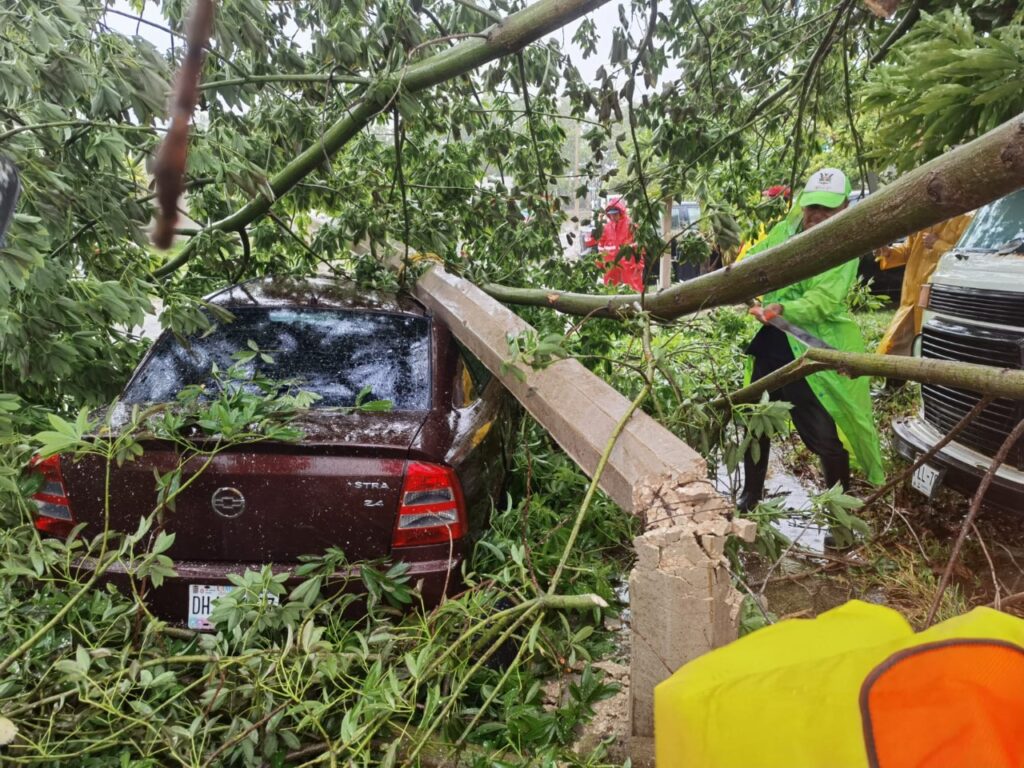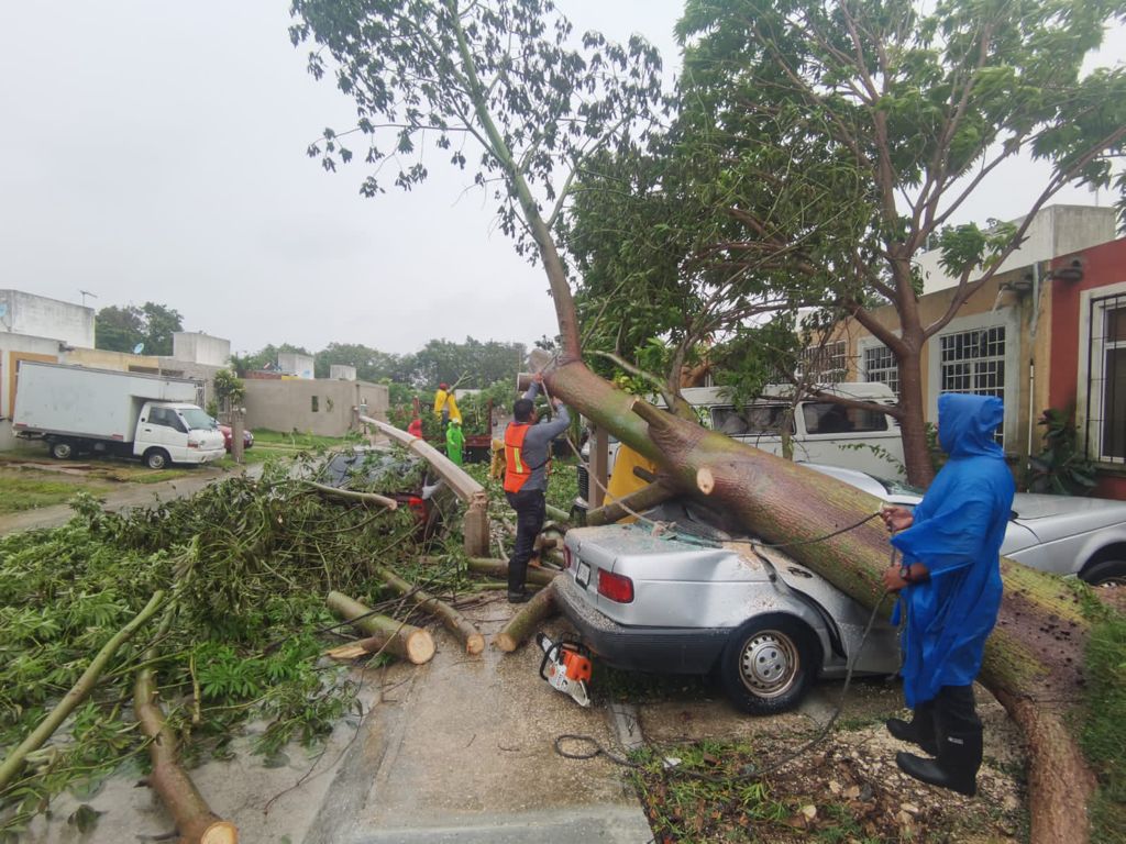 Por su parte, Luis Cardeña Peña, director general de Servicios Públicos, dio a conocer que cuadrillas de trabajadores, en coordinación con el cuerpo Bomberos, despejaron las vialidades en las que habían caído algunas ramas y muchas hojas, aunado al reporte de un árbol que cayó sobre un vehículo en un domicilio particular del fraccionamiento Villas la Playa y otro más sobre una vivienda de El Faro, mientras que un poste de luz cayó sobre un auto compacto.